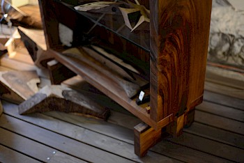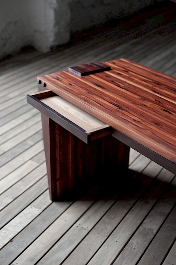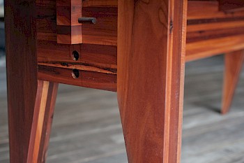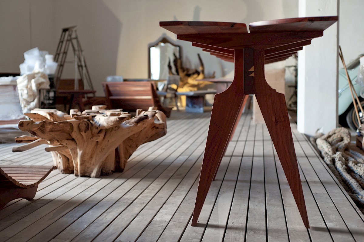 Desde el año 2000 trabaja con maderas exóticas de la Península, tanto en la industria manufacturera como en la elaboración de objetos artesanales. Funda su primer taller de muebles, en el sur de Quintana Roo, en 2002. Desde entonces diseña y produce piezas con las más bellas especies de la región.